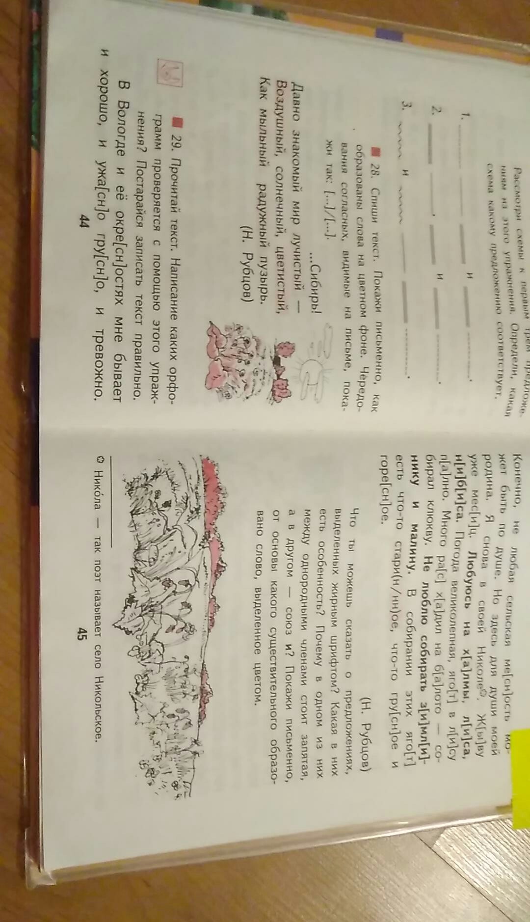 Окрестностях (окрестность), ужасно, грустно (грусть), местность (место), живу (гласная после шипящих), месяц (словарное слово), холмы (холм), леса (лес), небеса (небо, небесный), ягод (ягоды), в лесу (лес), полно (полный), раз (разок), ходил (ход), болото (словарное слово), землянику (словарное слово), ягод (ягоды), старинное (старин - корень, н - суффикс, ое - окончание), грустное (грусть), горестное (горесть).