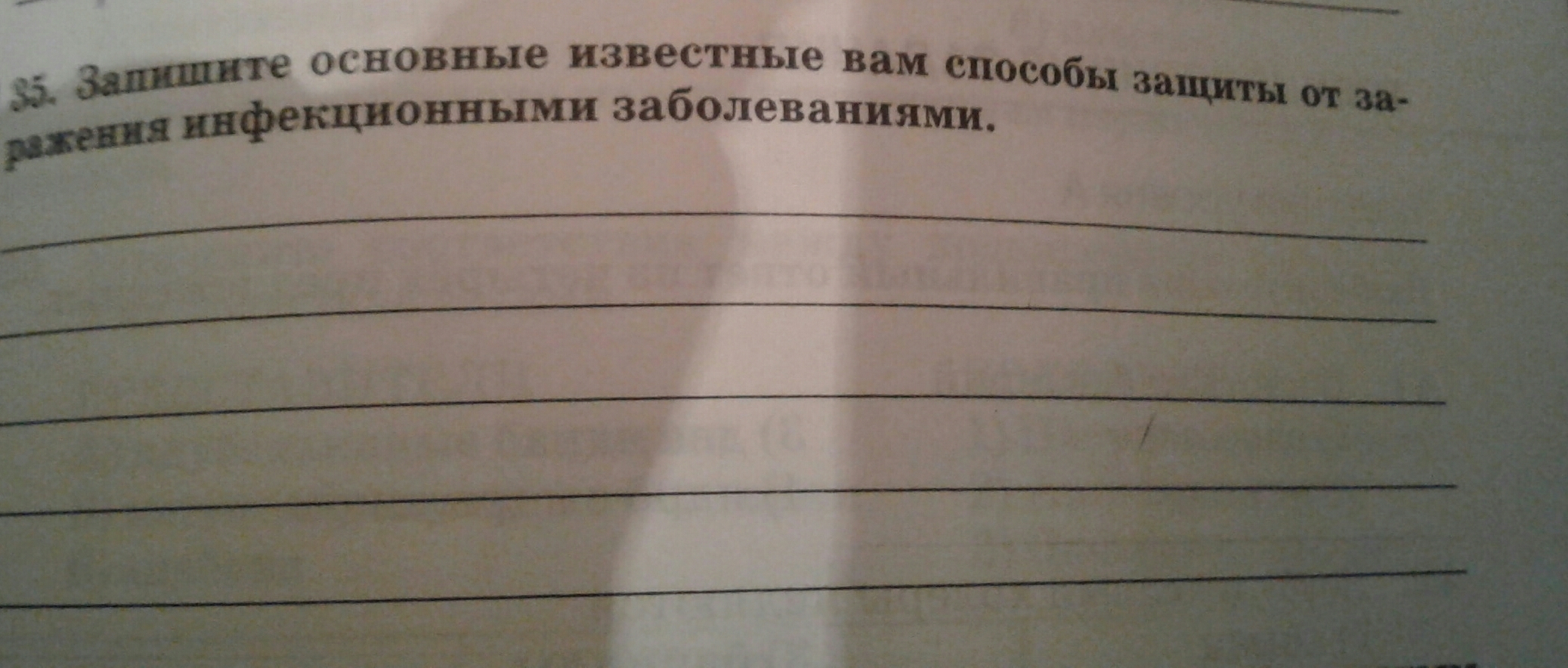 Запишите основные известные вам способы защиты от заражения инфекционными заболеваниями