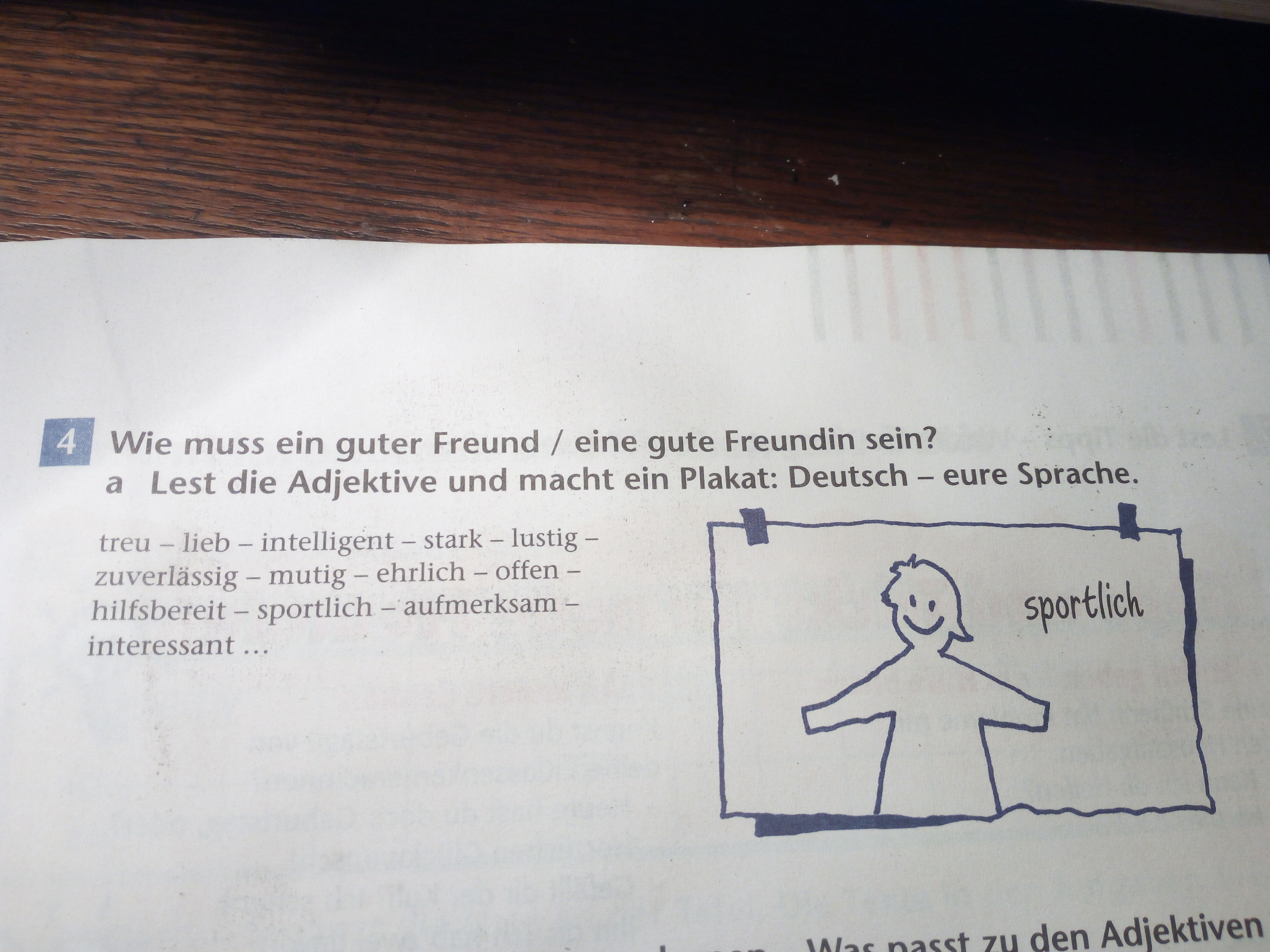 Der echte Freund (или die echte Freundin) muss treu, lustig, zuverlässig, ehrlich, offen, hilfsbereit, aufmerksam, interessant sein. (Можно добавить другие слова , на Ваше усмотрение).
