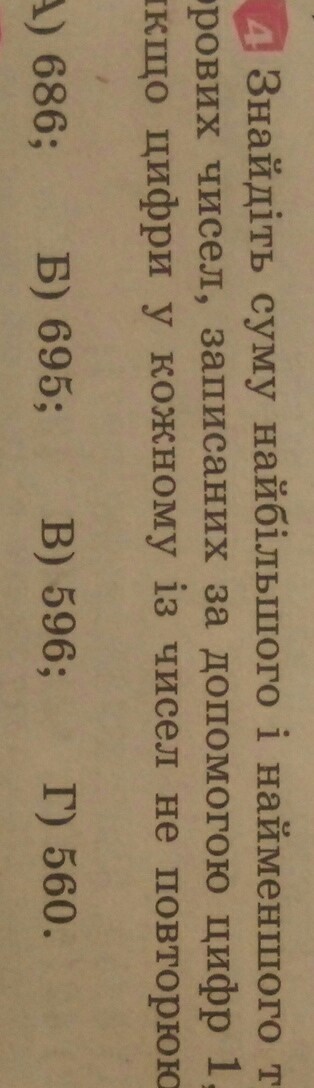 математика 5класНайдите сумму наибольшего и наименьшего три цифровых чисел записанных за допомогою цифр 1 4 5 я хочу цифры у кожному из чисел не повторяются