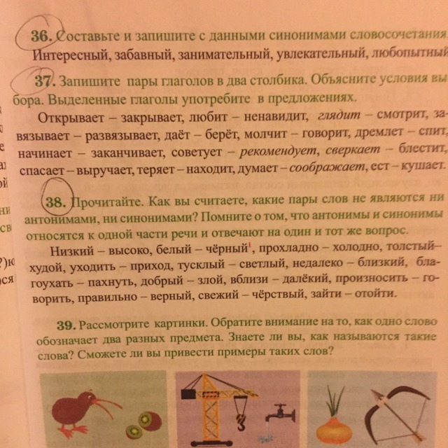Низкий-высоко; уходить-приход; недалеко-близкий; благоухать-пахнуть; вблизи-далёкий; произносить-говорить; правильно-верный; зайти-отойти.