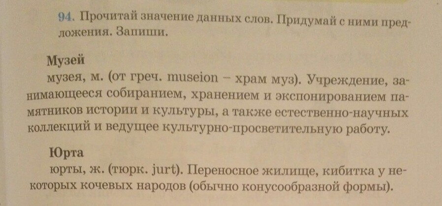 прочитай значение данных слов. придумай с ними предложения. запиши.