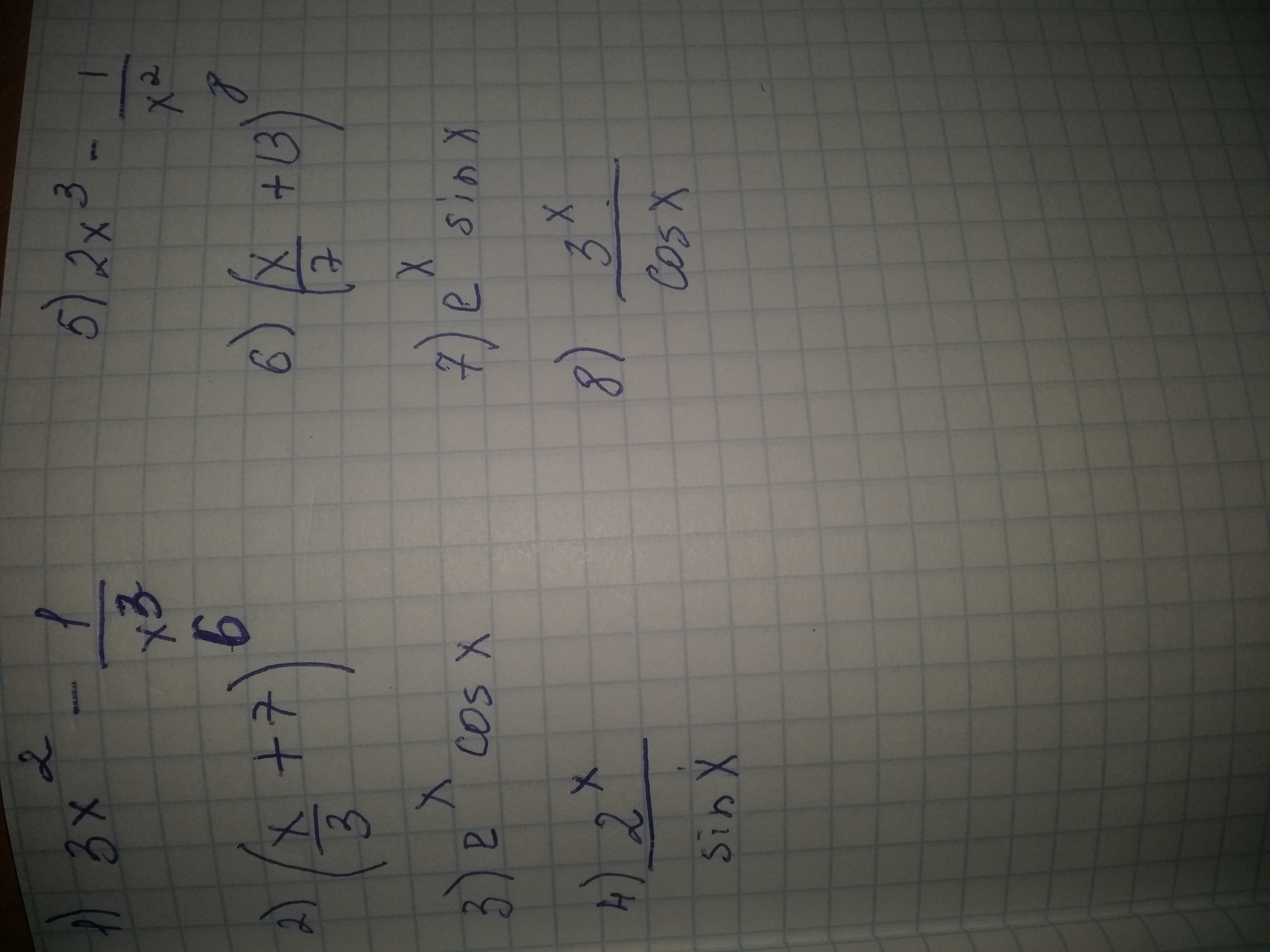 5. (2x³ - 1/x²)' = (2x³) ' - (x⁻²)' = 6x² + 2x⁻³ = 6x² + 2/x³