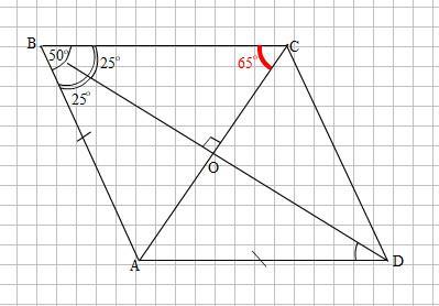 ∠ВСО = 90° - ∠СВО = 90° - 25° = 65°