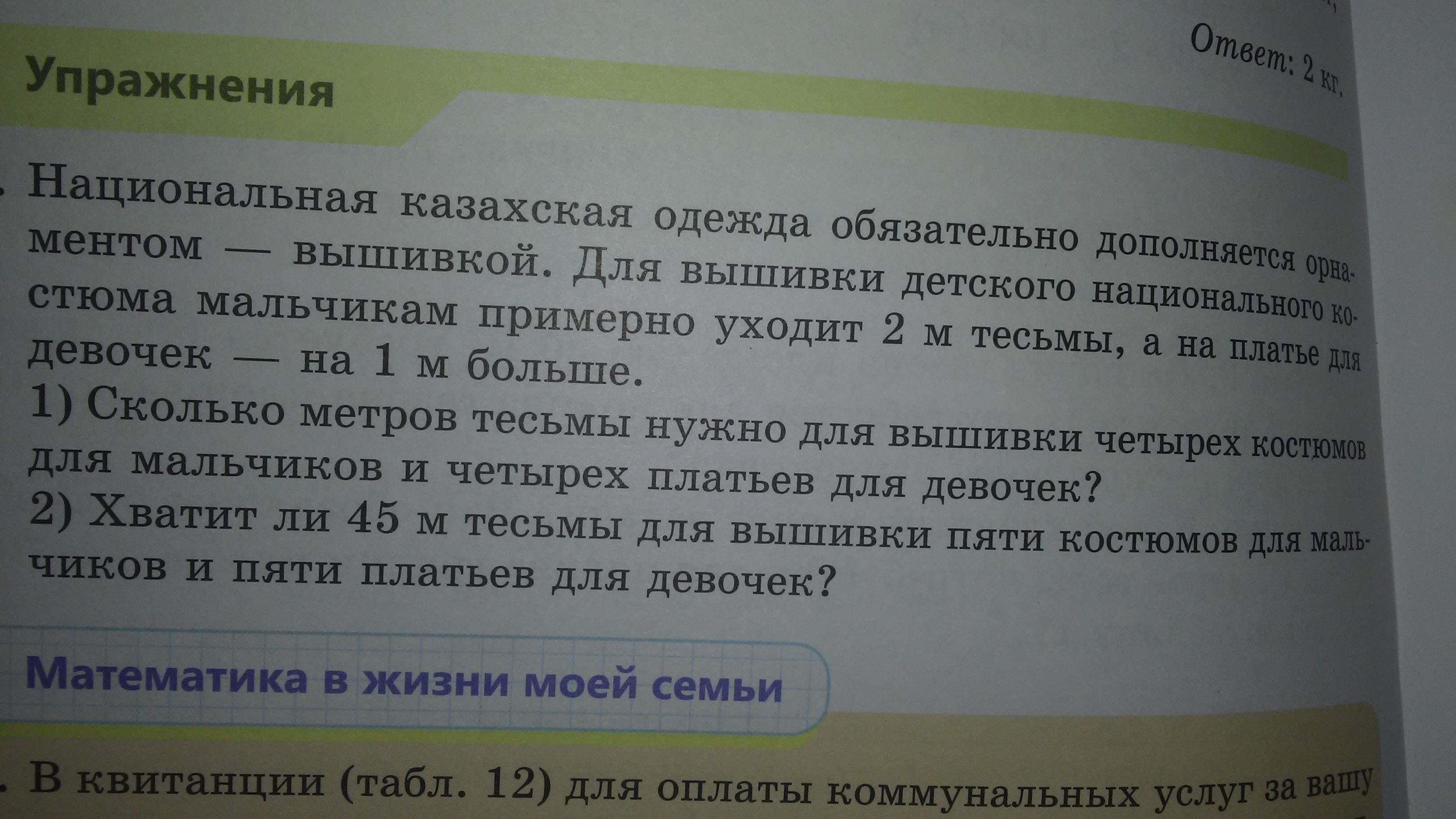 Национальная казахская одежда обязательно дополняется орнментом - вышивкой. Для вышивки детского национального костюма мальчикам уходит 2 м тесьмы, а на платье для девочек - на 1 м больше.