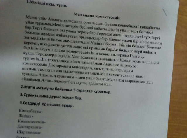 мен үйде жинаймын.Терезелерді сүртем.Тамақтан кейін ыдысты жуамын.