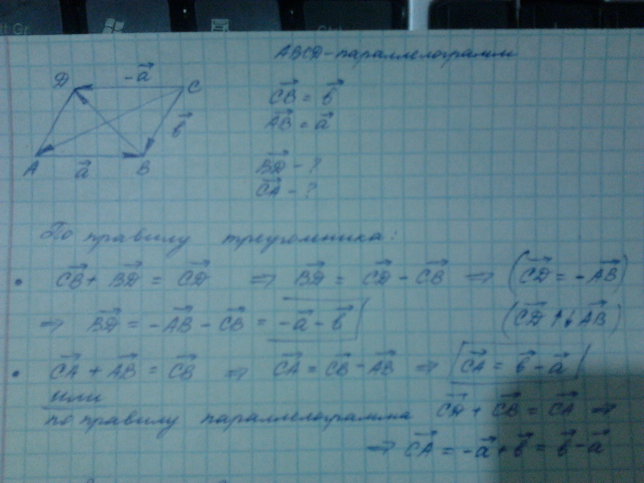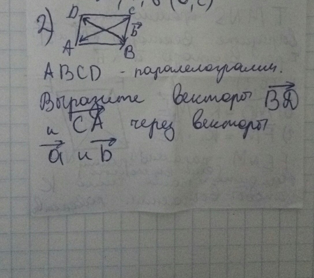 ГЕОМЕТРИЯ 9 КЛАСС, ADBC-паралелограмм,Выразите векторы BD и CA через векторы a и b