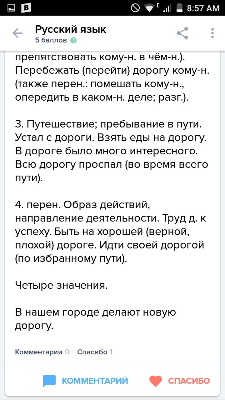Найди в словаре С. И. Ожегова толкование слова дорога. Сколько значений у этого слова? С любым из значений придумай и запиши предложение.