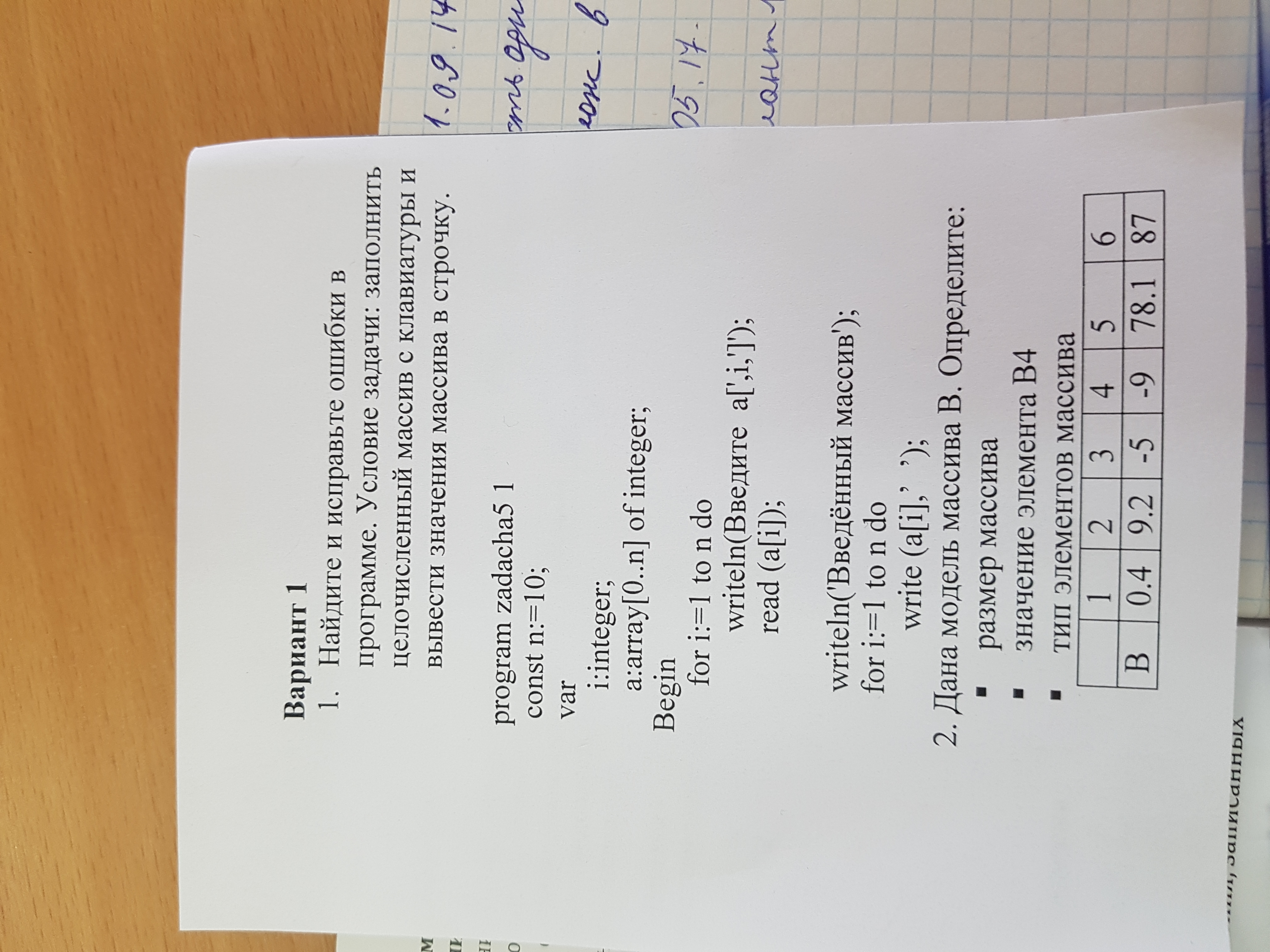 Тип эл-в массива: В1,В2,В5 - действительные числа;