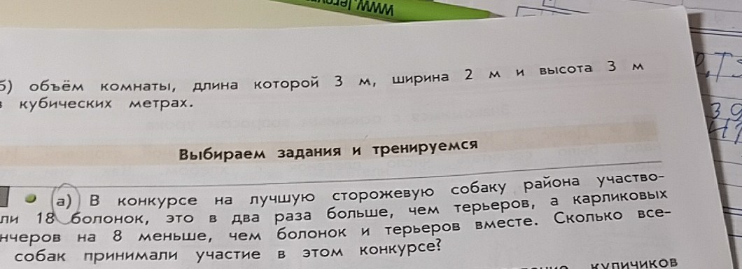 в конкурсе на лучшую сторожевую собаку района участвовали 18 болонок это в два раза больше чем терьеров а карликовых пинчеров на 8 меньше чем баллонов и терьеров вместе Сколько всего собак принимали участие в этом конкурсе ... помогите пожалуйста решить