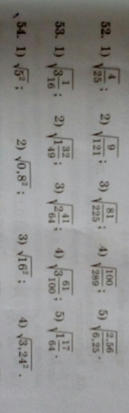помогите вычесить . тема : свойства арифметического корня.52и 54 номер пж срочно