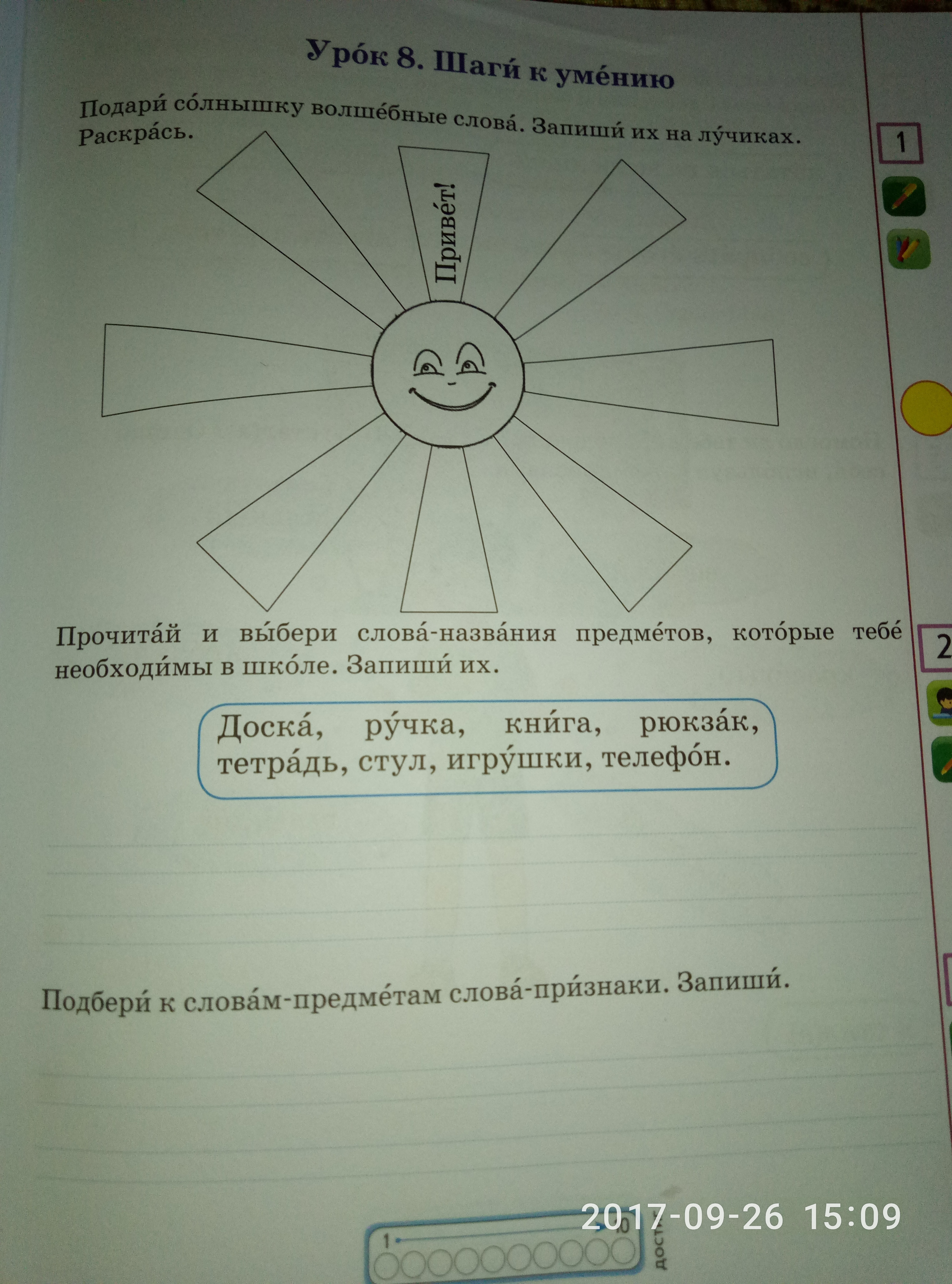 Слова: доска ручка книга рюкзак тетрадь стул!