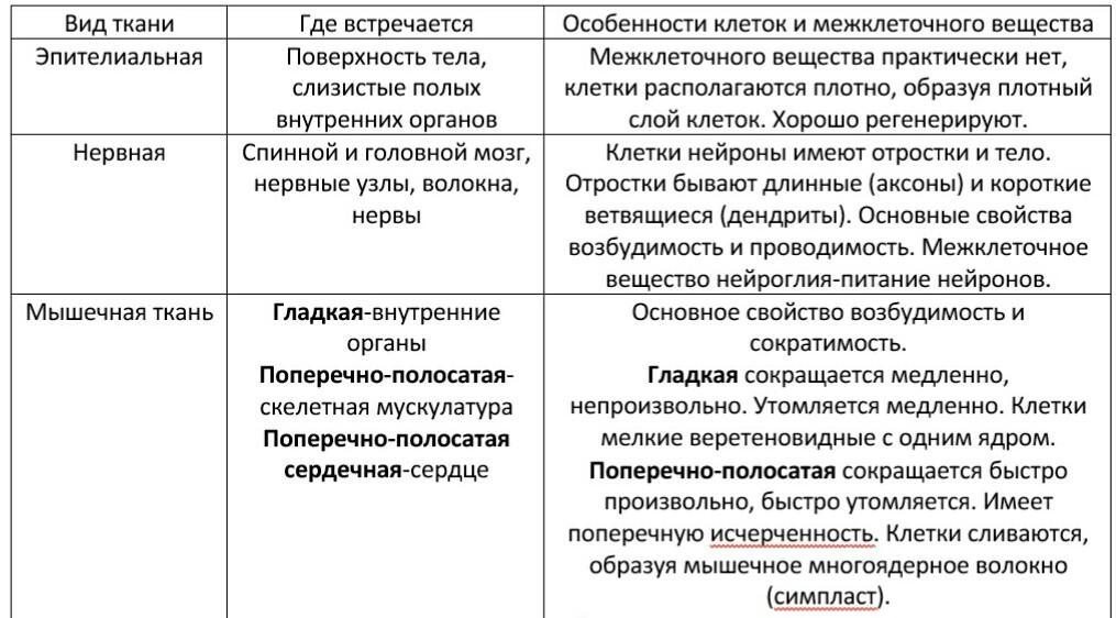 Вид ткани Где встречаются Особенности клеток и межклеточного