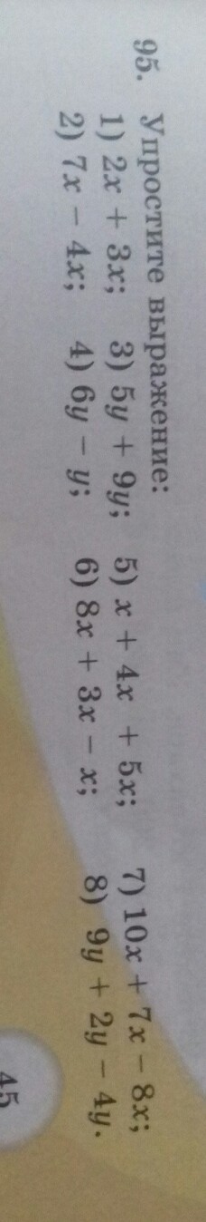 2) 3x, 4) 5y, 6) 10x, 8) 7y;