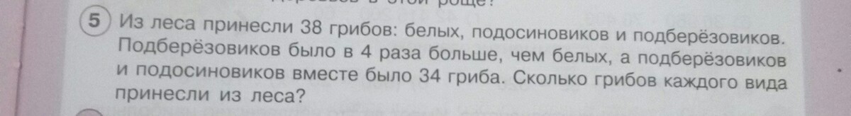 1)38-34=4(шт)-Сколько привезли белых грибов