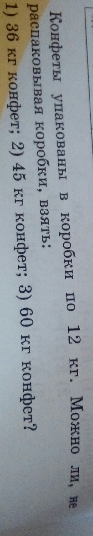 36 кг конфет - берем 3 коробки по 12 кг. 3 * 12 = 36