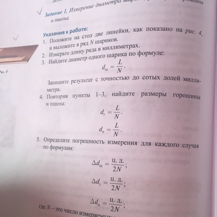 Диаметр равен: длинну ряда разделить на число горошин. ^_^