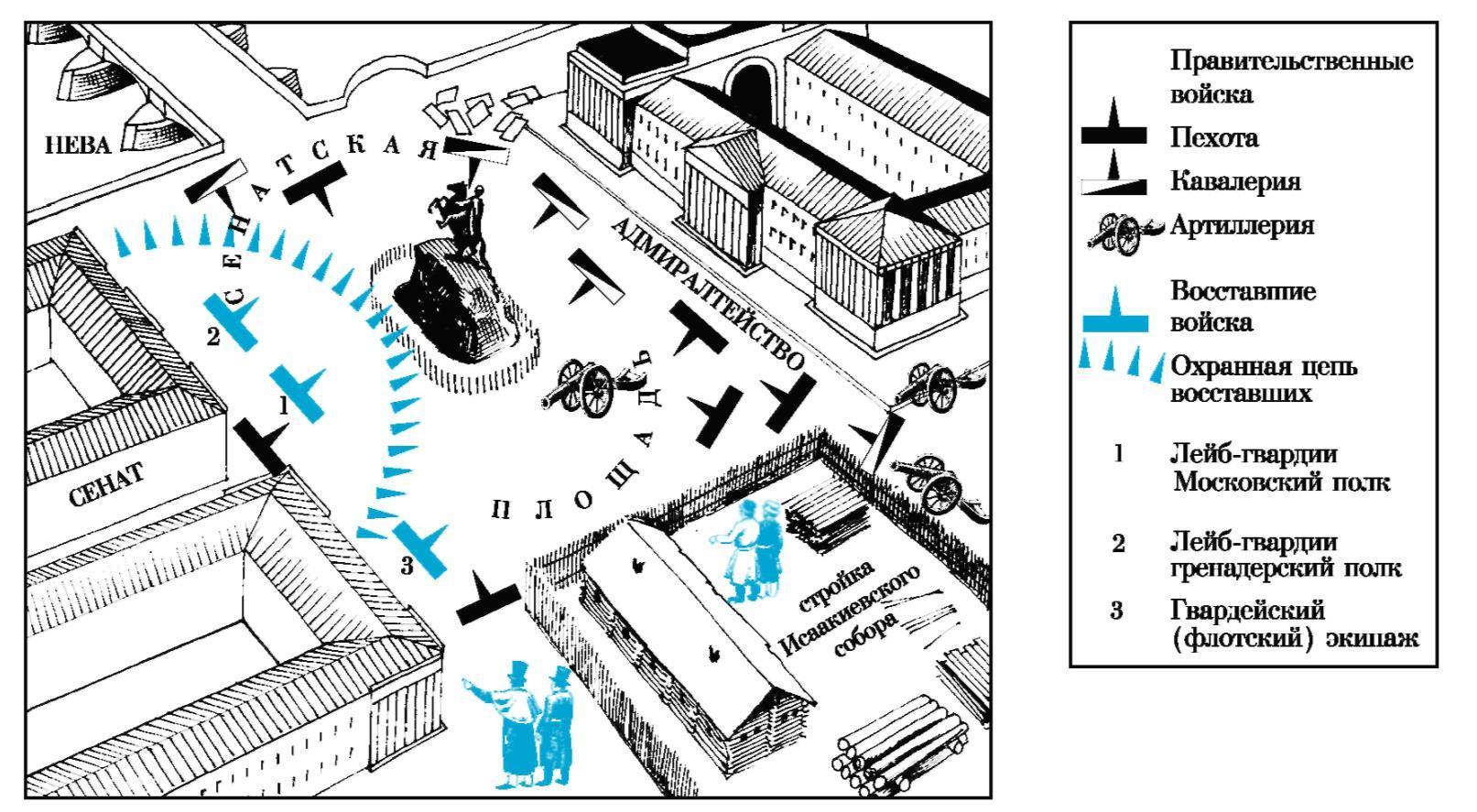 3. Восстание проходило рядом с адмиралтейством, оно обозначено на схеме.