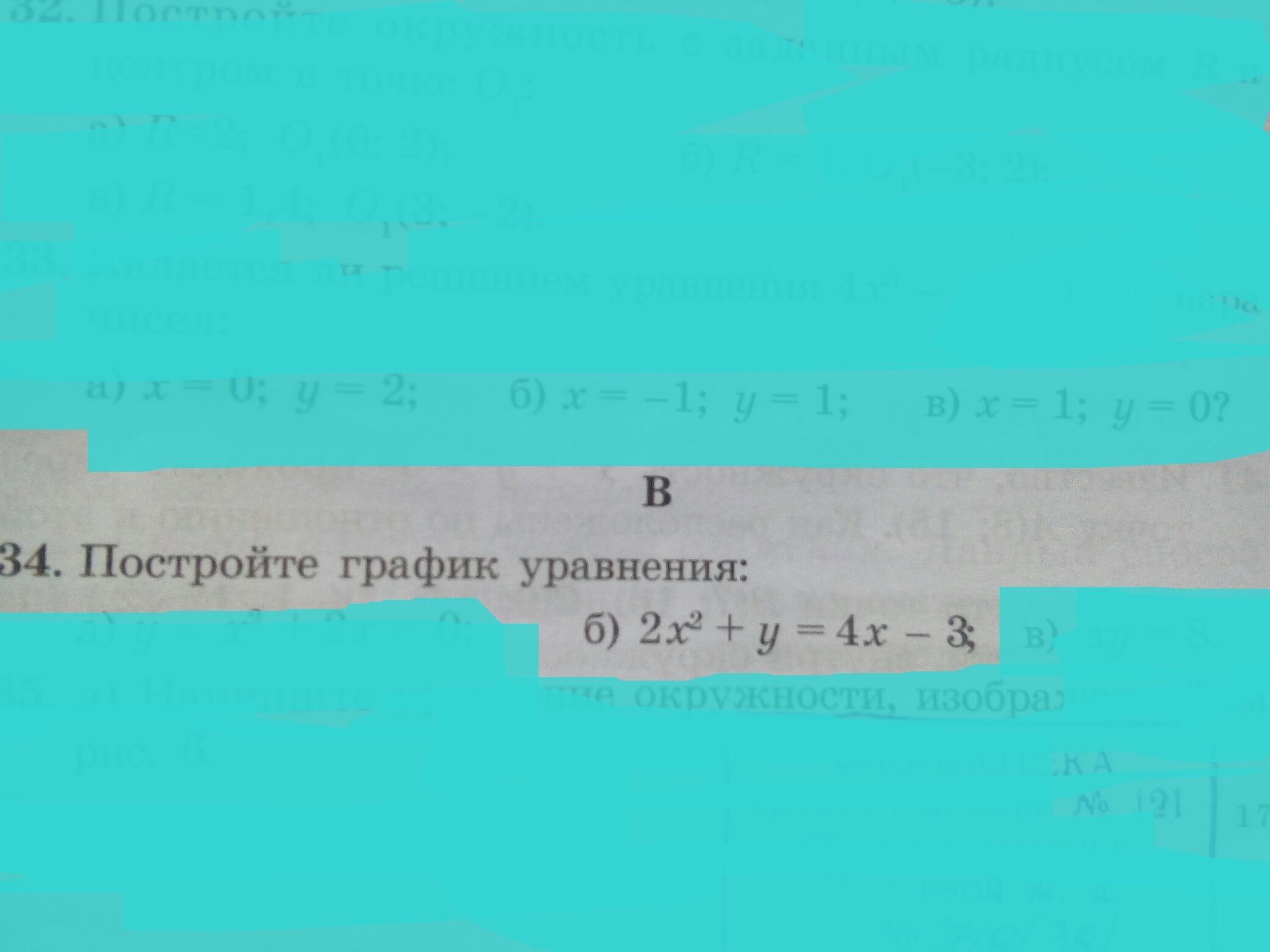 Вырази отсюда у, получится квадратичная функция. найди координаты вершины ну и точки другие. у= -2х в кв. +4х-3 парабола, ветви вниз. Вершина в точке (1; -1)