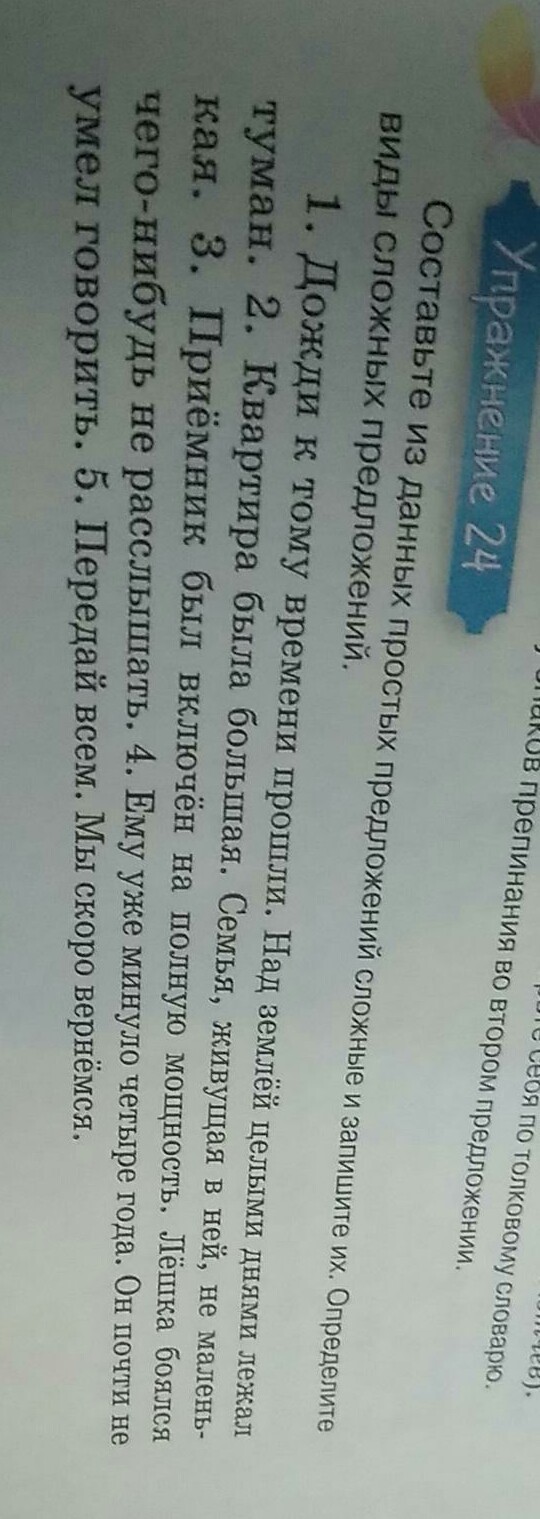 составьте из простых предложений сложные и написать вид составленных сложных предложений (сложносочинённое, сложноподчинённые,бессоюзное)