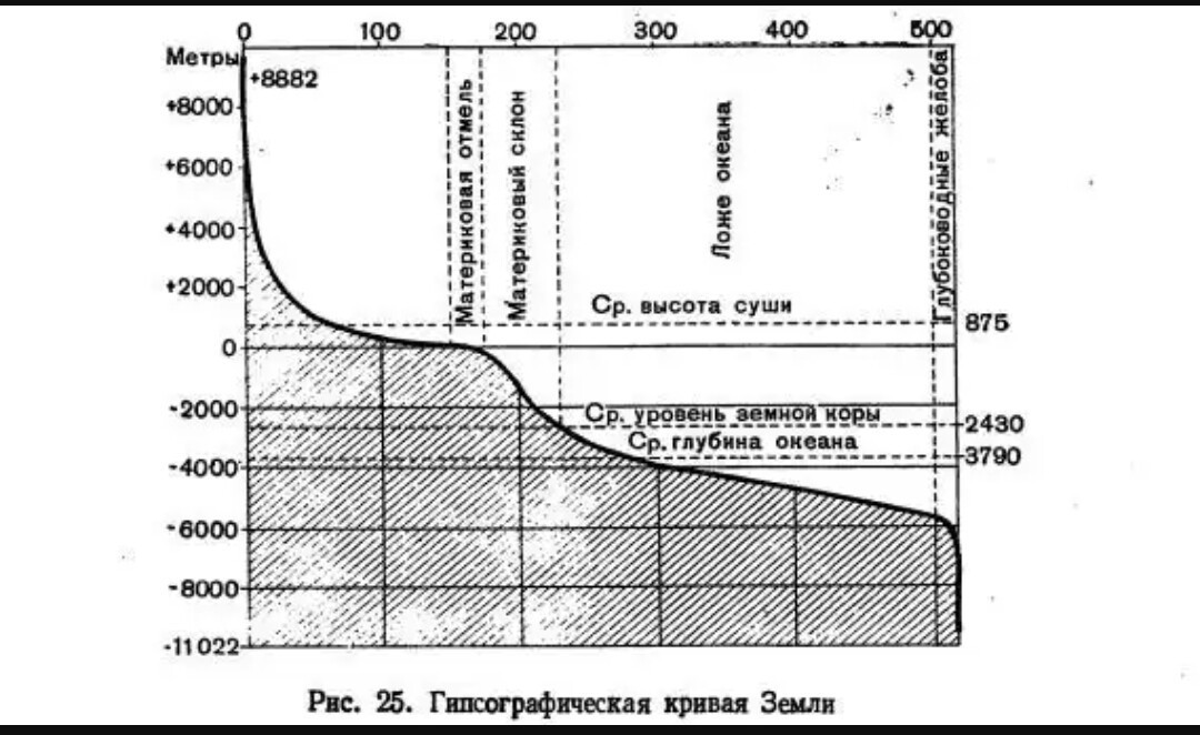 - Уровень поверхности, который получился бы в результате равномерного распределения массы всех материков. Этот уровень должен лежать на 2440 м ниже уровня мирового океана.