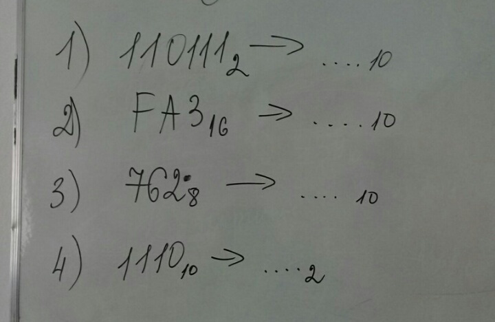 Здравствуй, я с Android и расписывать не могу. Перевод в различные системы счисления выполняется с помощью методов описанных в параграфе. Я лишь оставлю ответы, чтобы ты мог сверится, ты уж войди в положение...