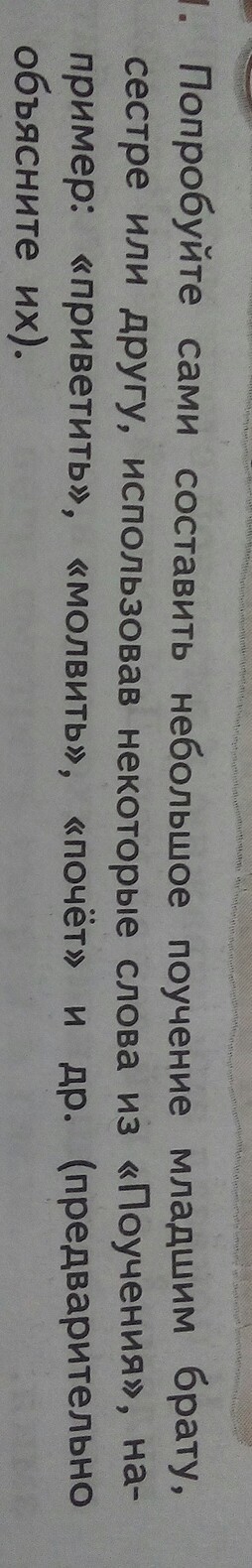 попробуйте сами составить небольшое поучение младшеиу брату сестре или другу использовав некоторые слова из Поучения... Пжжжю!!!!!!! Помогите!!!!!!!!! Умоляю!!!!!!!!