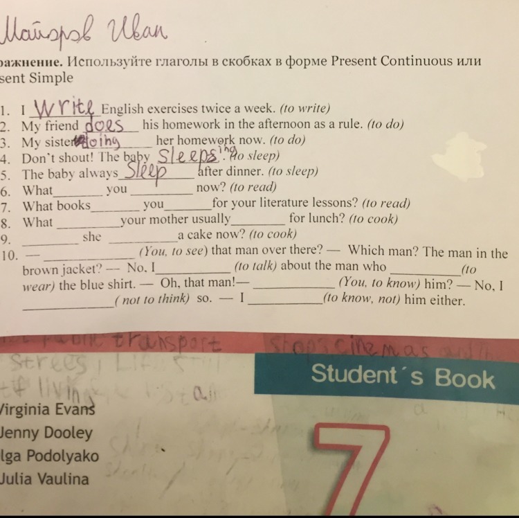 10. Do you see, I am talking, is wearing, Do you know, I don't think, I don't know.