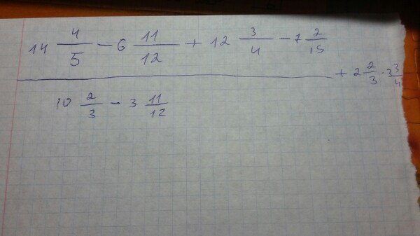 Сначала же нужно 14 4/5 - 6 11/12 , найти ответ и прибавлять 12 3/4 и т.д.