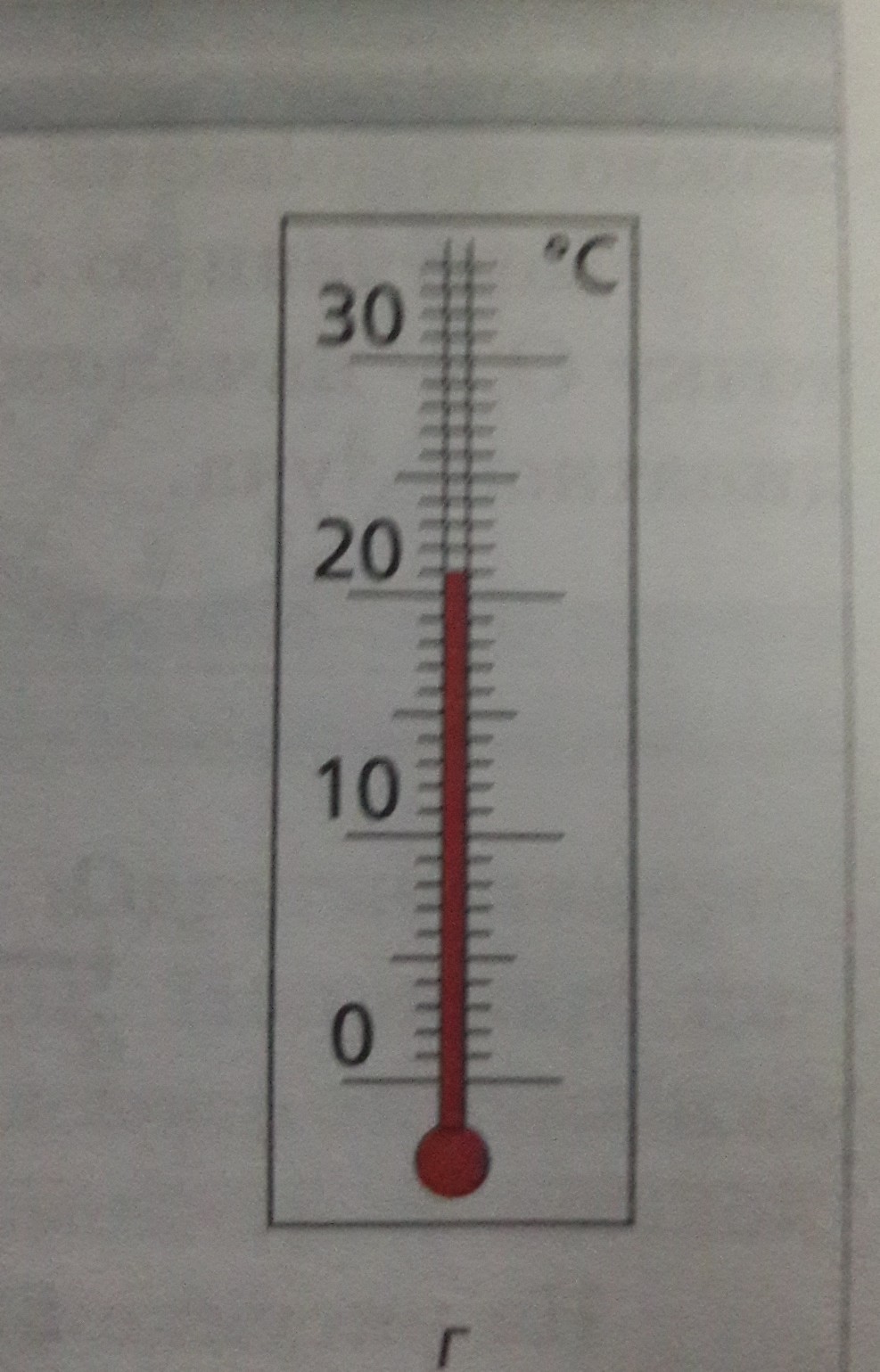 какую температуру будет паказивать,изображённый на рисунке 54,г если его столбик :1) поднимается на три деления;2) опустится на пять делений?