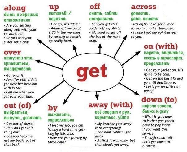 И его дополнениями (get over, get down и т.д.)