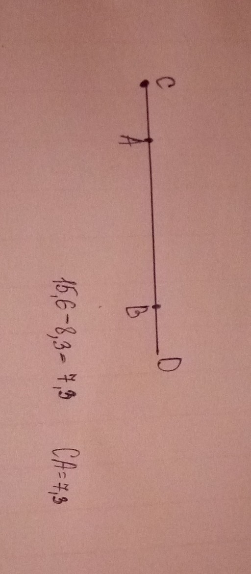 постройте Луч CD и на нём Нарисуйте отрезок AB. Длина отрезка AB составляет 8 см 3 мм а длина отрезка CB 15см6мм.чему равна длина СА?