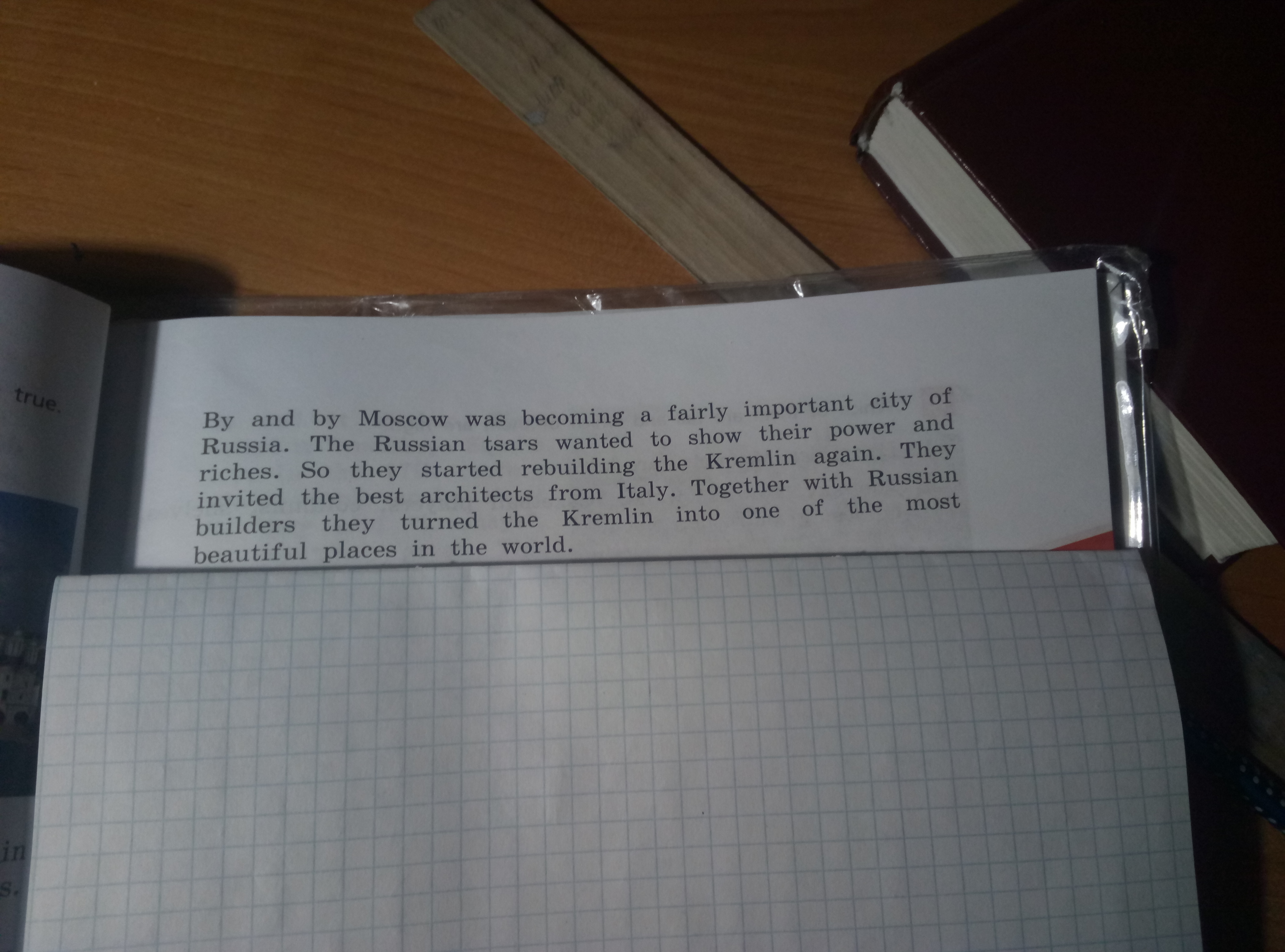 Со второго предложения. Русские царь хотели показать свою мощь и богатство. поэтому они снова начали перестройку Кремля. Они пригласили лучшего архитектора из Италии. совместно с русскими строителями они превратили кремль в одно из красивейших мест в мире.