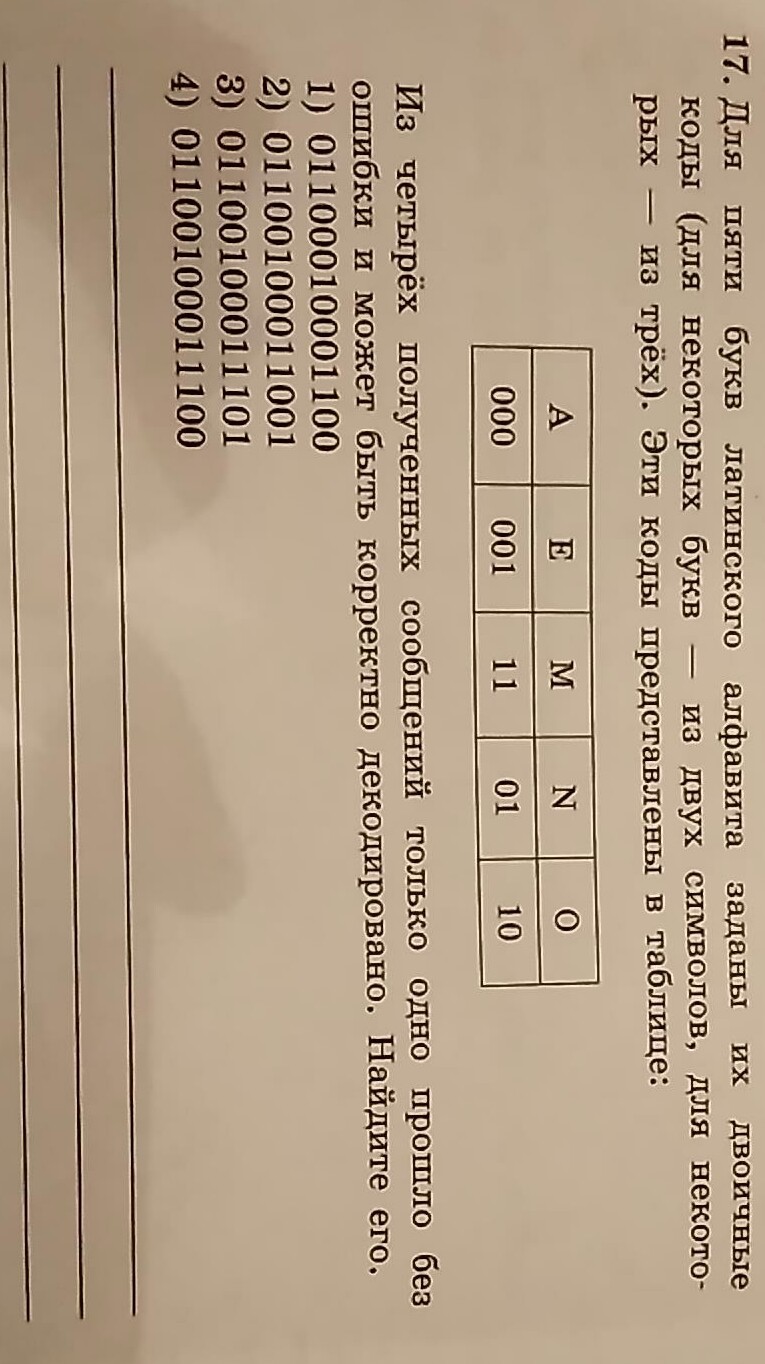 1) 01(N).10(O).001(E).000(A).11(M).00(нет такого) => не подходит.