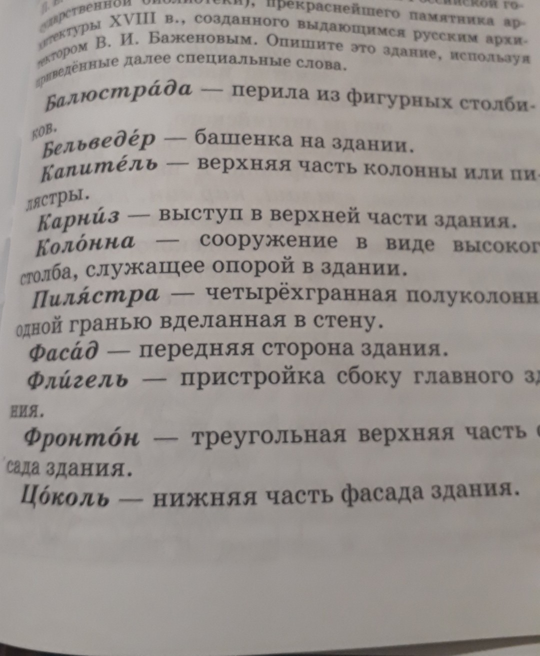 нужно с помощью этих слов которые черно белые описать здание пашкова в Москве