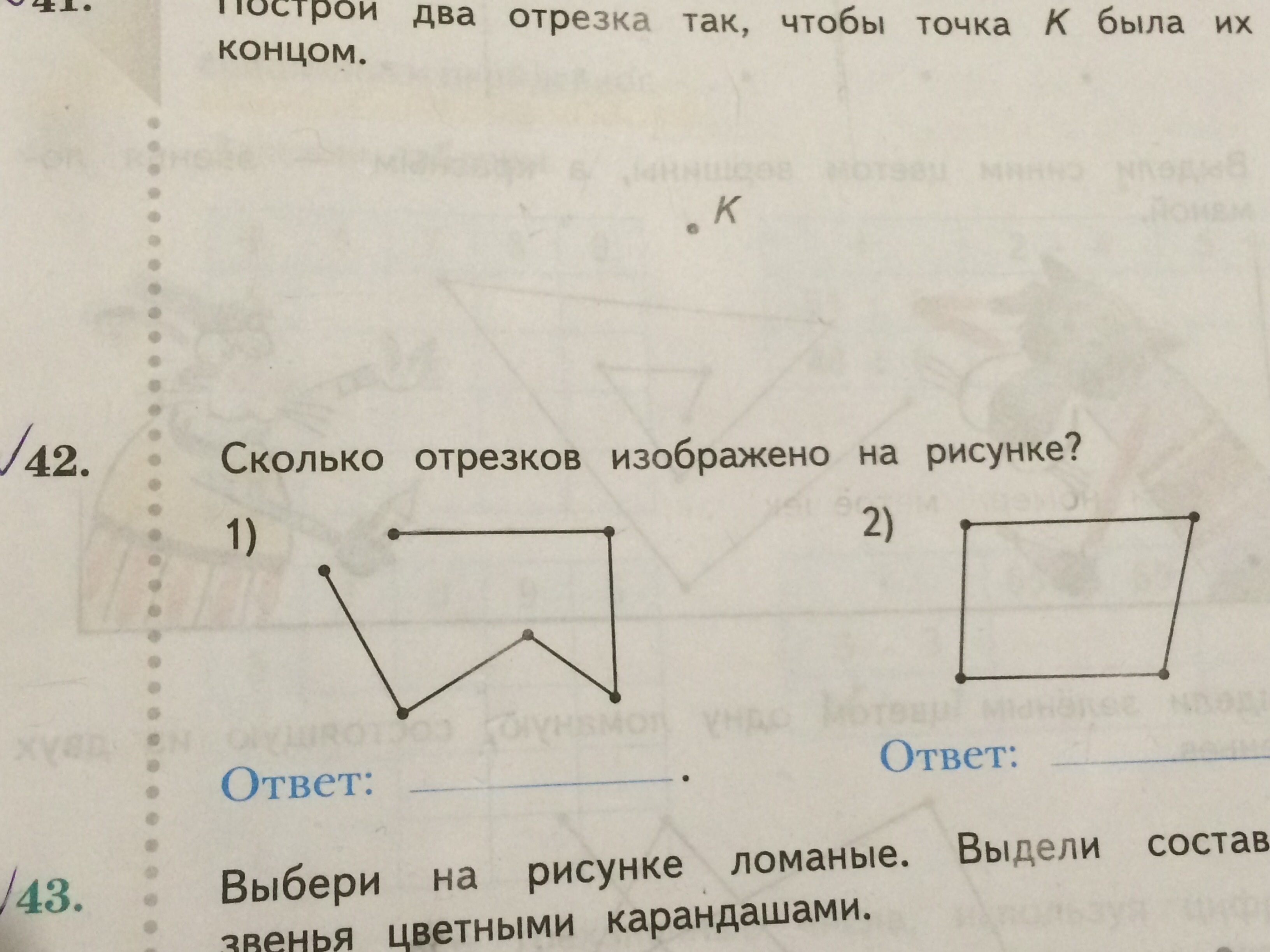 1) 6 отрезков. 2) 4 отрезков.
