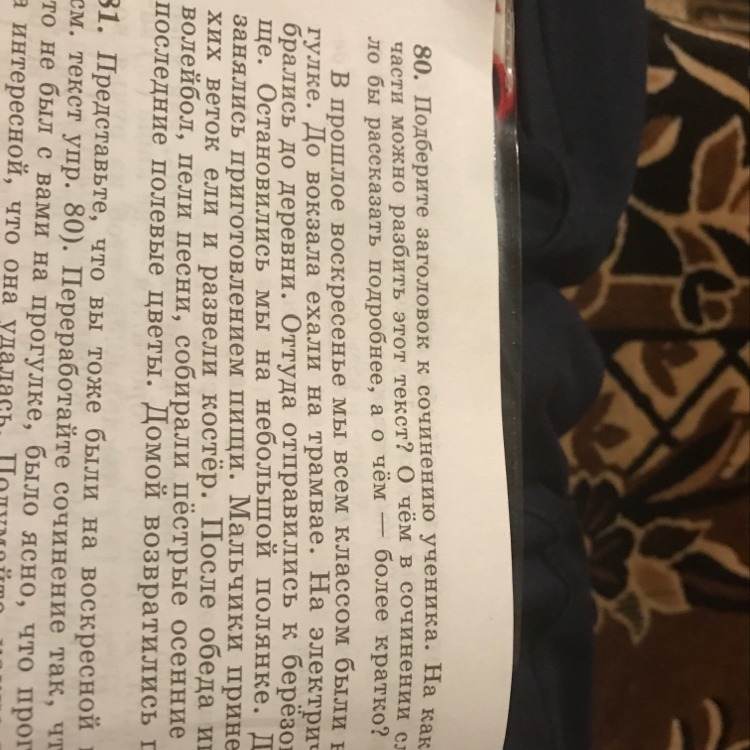 Подберите заголовок к сочинению ученика.На какие части можно разбить этот текст?о чем в сочинении следовало бы рассказать подробнее ,а о чем более кратко. Помогите пожалуйста
