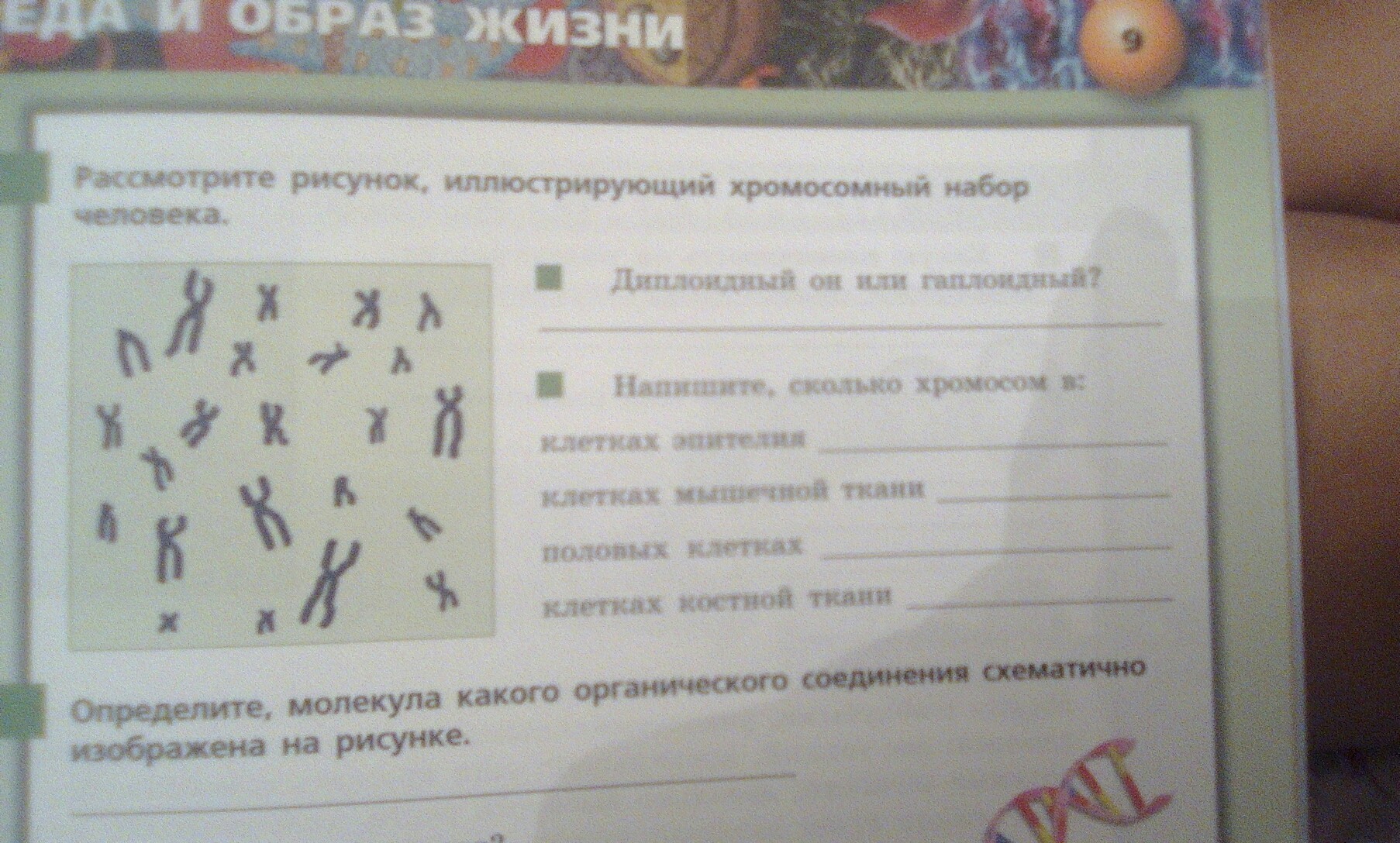 Рассмотрите рисунок, иллюстрирующий хромосомный набор человека. Помогите пожалуйста (Во-втором вопросе написано "клетках эпителия")