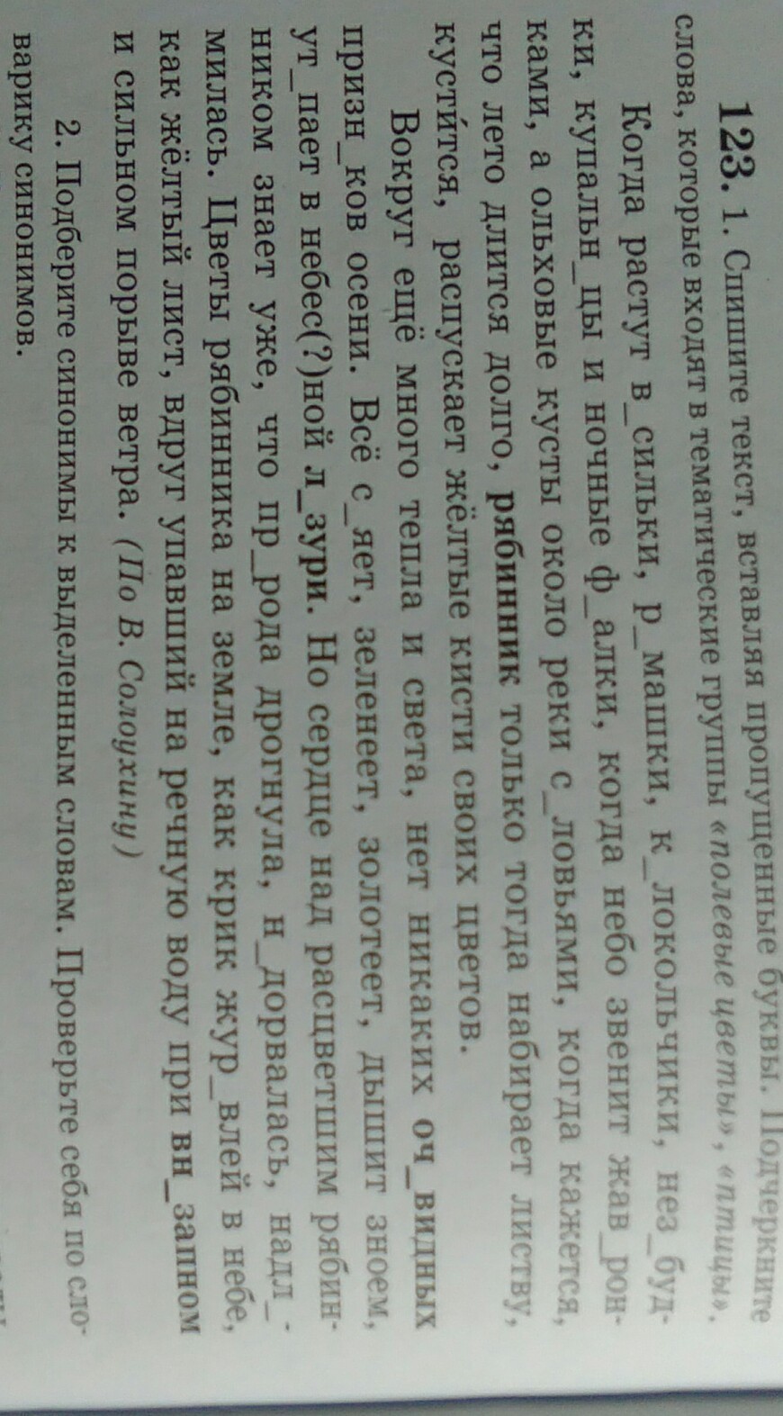 Просто слова с пропущенными буквами: очевидных, признаков, сияет, утопает, небесной, лазури, природа, недоровалась, надл..милась(не поняла), внезапном