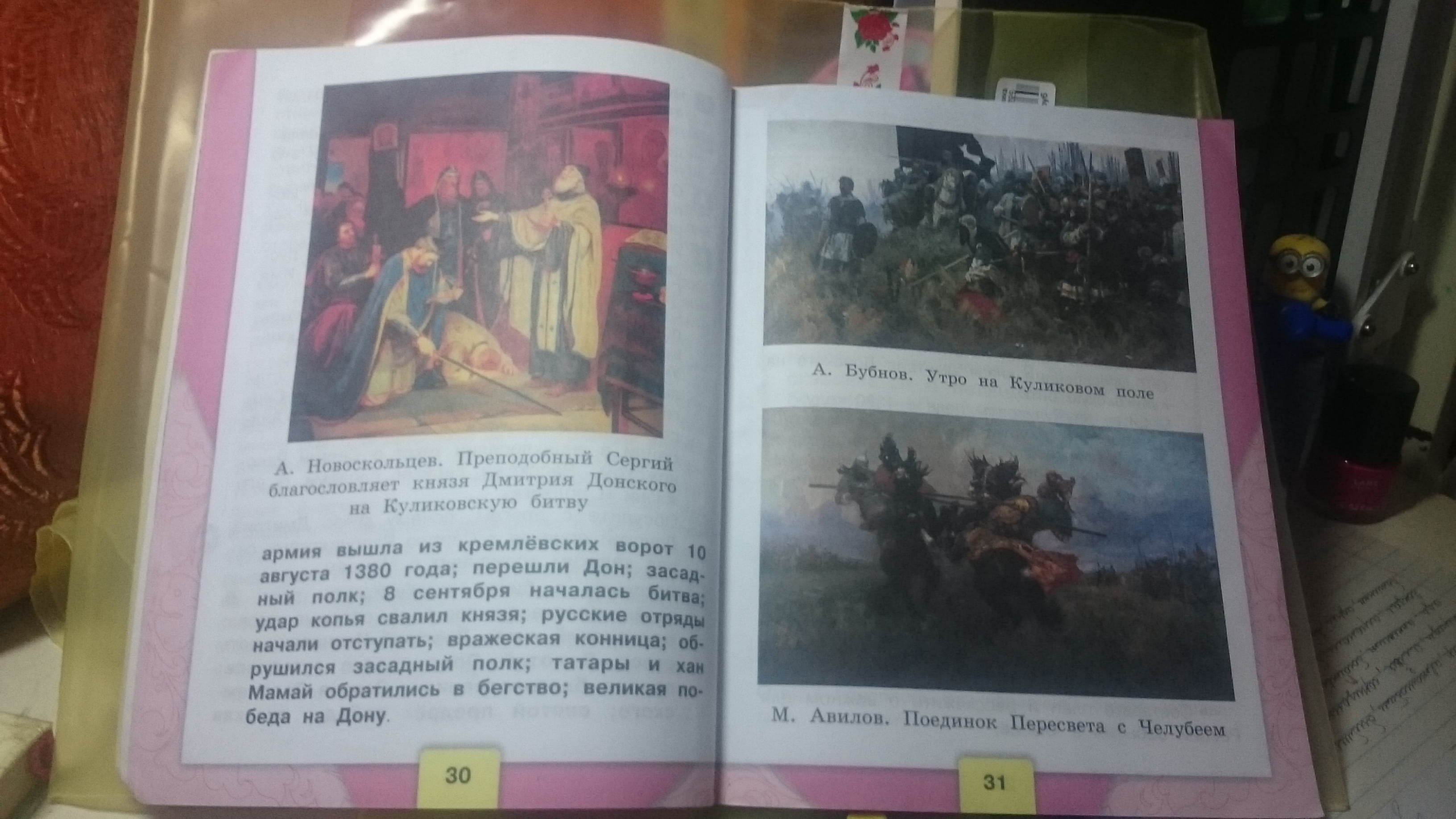 ...И вот собралась армия на Куликовскую битву,подвиги совершать.И началось все утром на Куликовом поле.Битва началась с поединка Пересвета с Челубеем.В итоге Пересвет победил и началась битва.В ней поранили Дмитрия Донского,но он,просвещенный Преподобным Сергеем встал,и сражался дальше.В итоге Куликовская Битва,превзошла все битвы тем,что потом возглавил после неё княжество Иван 3.Вот такая она была,Куликовская битва.