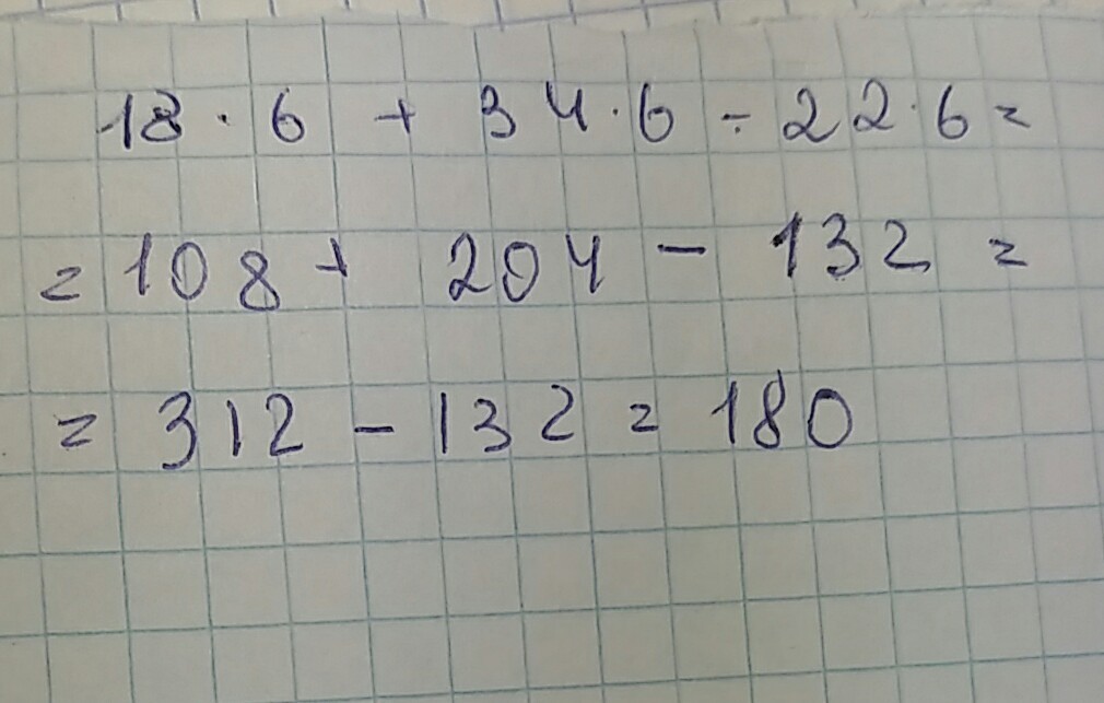 Ну или 18n+34n-22n; 18n+34n=52n и от 52n-22n=30n при n=6 следовательно 30*6=180