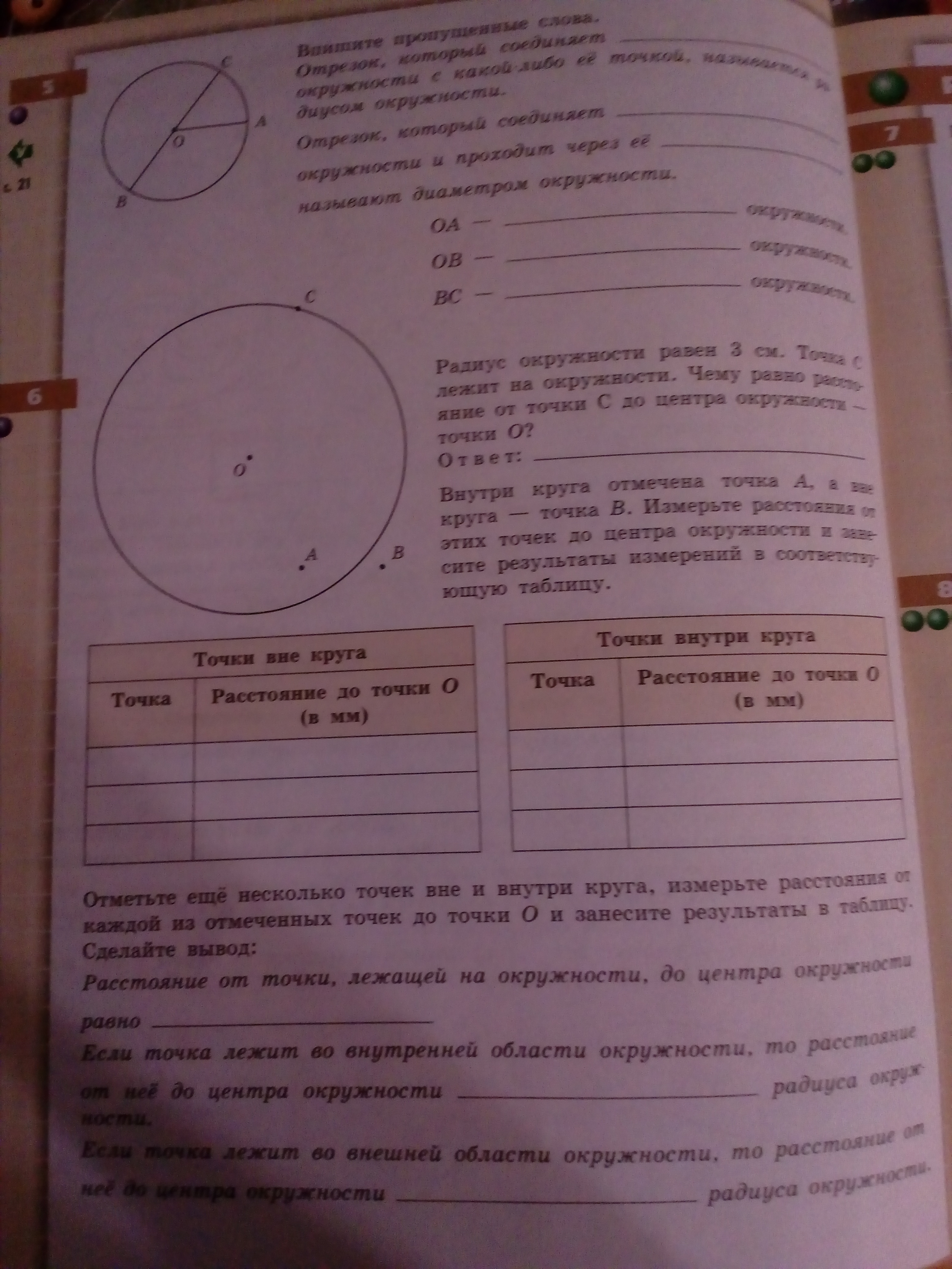 Если точка лежит на окружности то это радиус,если внутри окружности то это расстояние меньше радиуса,а если за пределами окружности то это расстояние больше чем радиус.