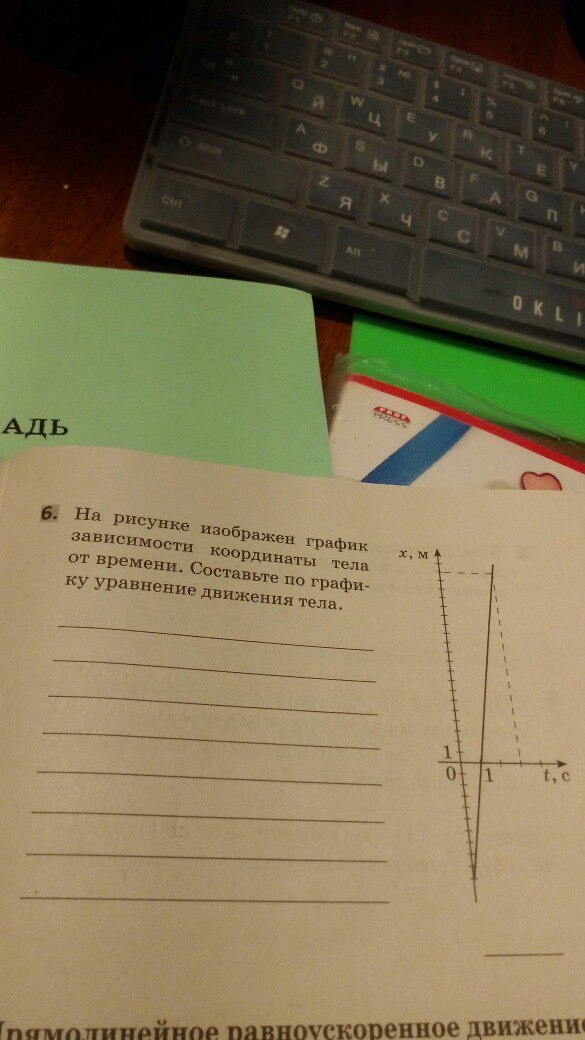 вниз от 0 - 10 делений (начальная координата -10) за 1 с координата стала 0, скорость 10 м/с.