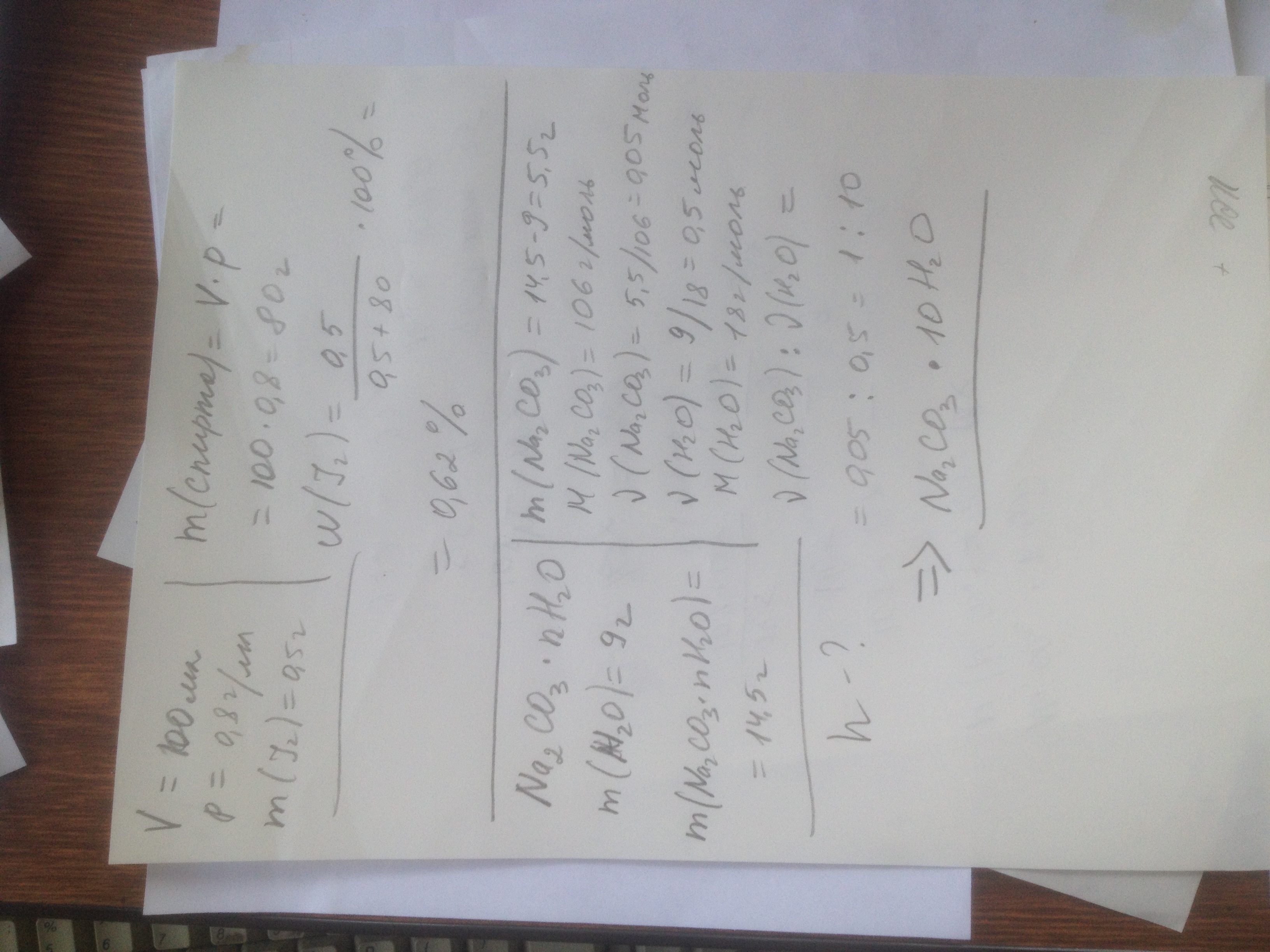 Определите формулу кристаллогидрата карбоната натрия, если известно, что при прокаливании образца этого кристаллогидрата массой 14,5 г его масса уменьшилась на 9 г. Умоляю помогите.