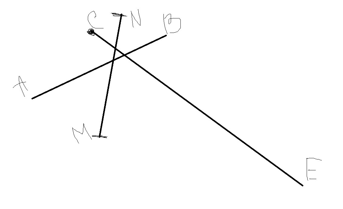 Начертите прямую AB, луч СЕ, отрезок MN так, чтобы прямая АВ пересекала луч СЕ и отрезок MN, а луч СЕ пересекал бы отрезок MN