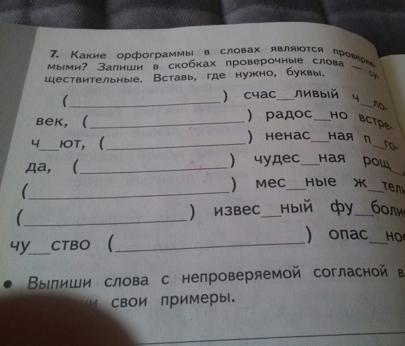 (счастье) счастливый человек, (радость) радостно встречают, (ненастье) ненастная погода, (чудеса) чудесная роща, (место) местный житель, (известие) известный футболист, чувство (опасен) опасности.