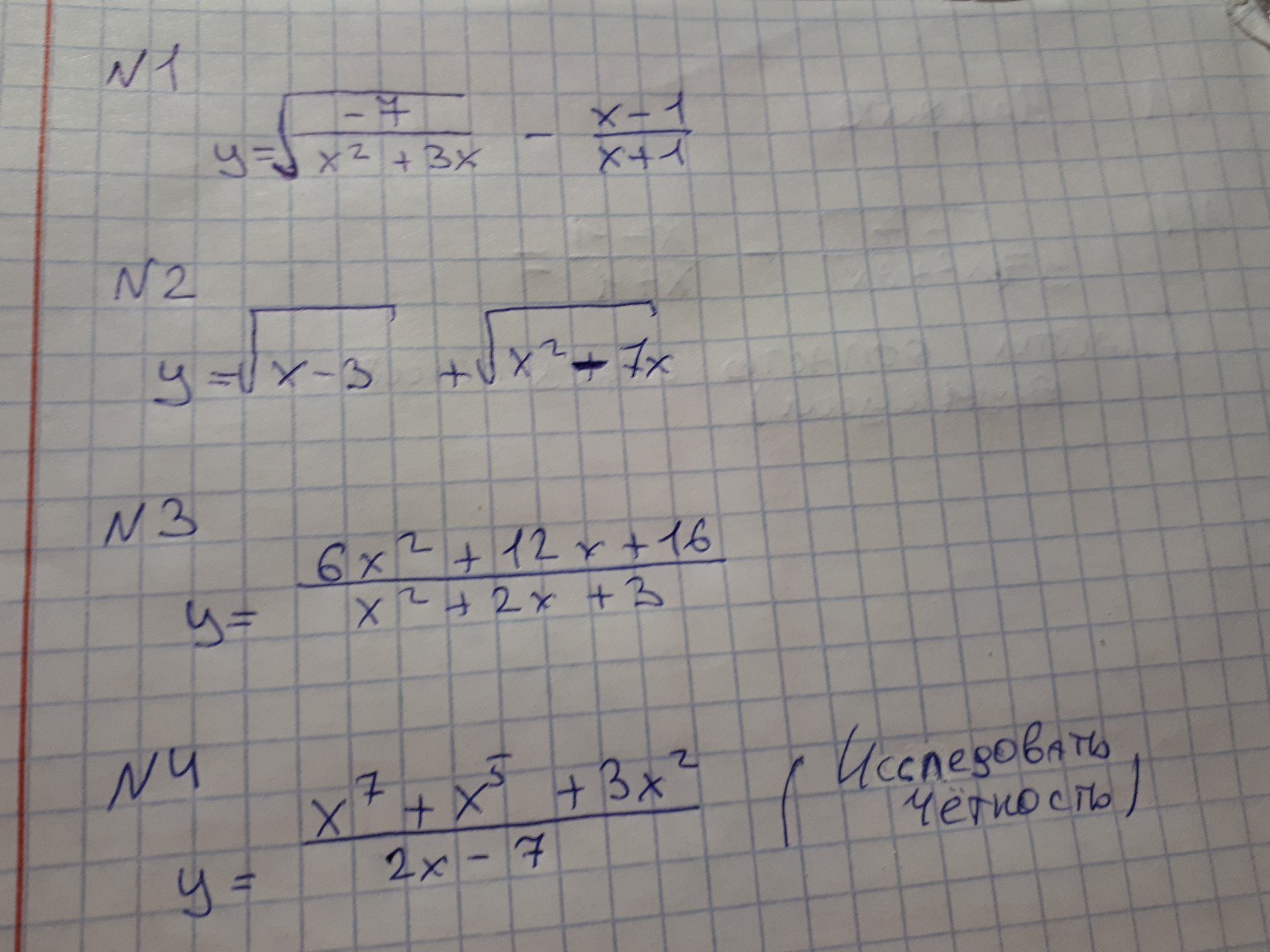 В 1-ом и 2-ом задание нужно найти область определения функции.