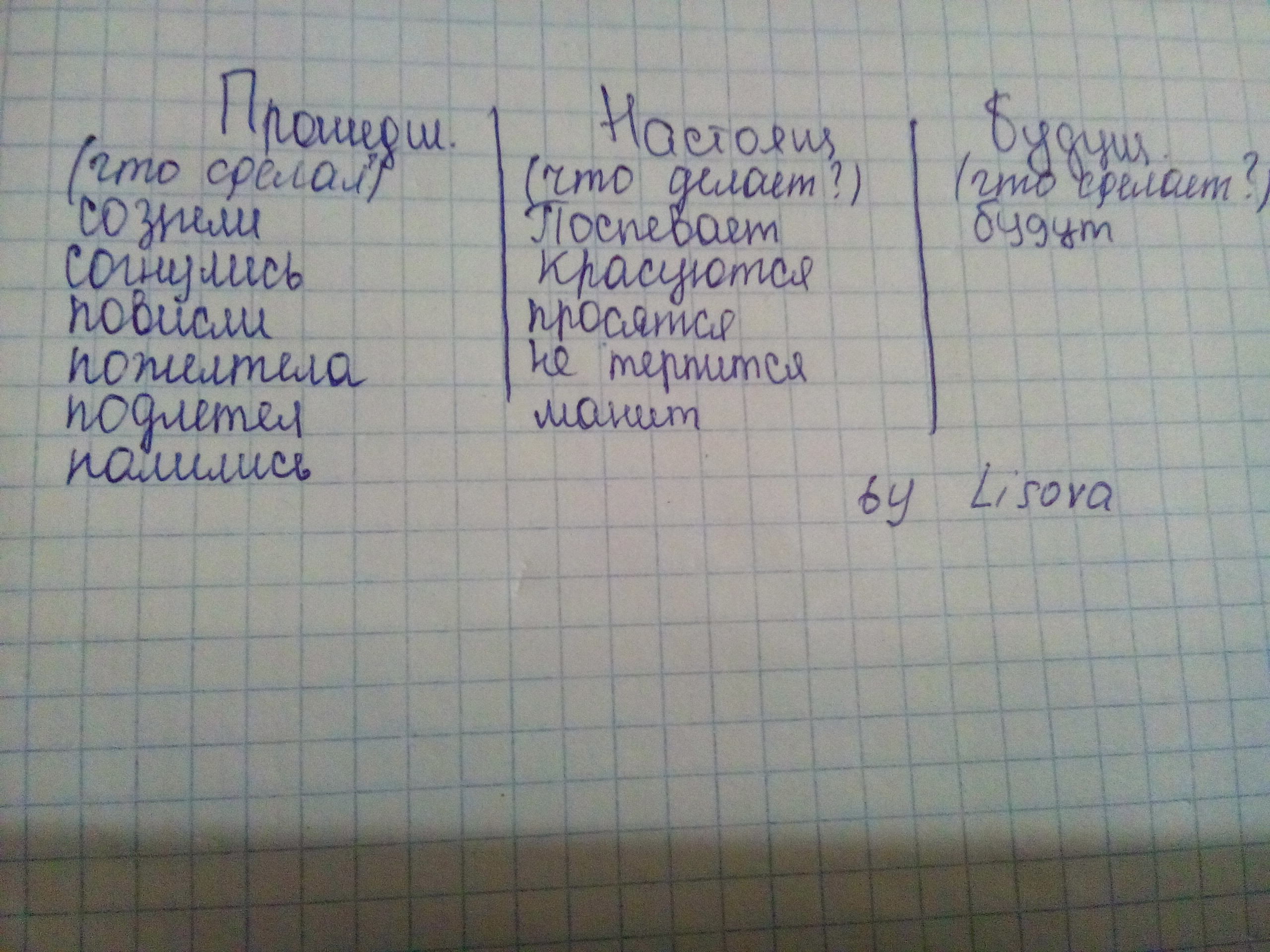 выписать из текста глаголы , стоящие в прошедшем , настоящем и будущем времени.