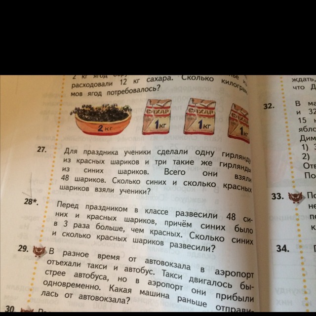 Пожалуйста помогите решить задачу заранее спасибо праздником в классе развесили 48 синих и красных шарика причём синее было в три раза больше чем красных сколько синих сколько красных Шариков развесили Номер 28