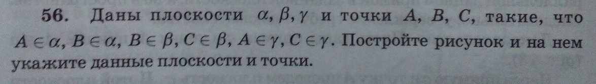 (Пишешь условие, какая точка в какой плоскости лежит/ принадлежит).